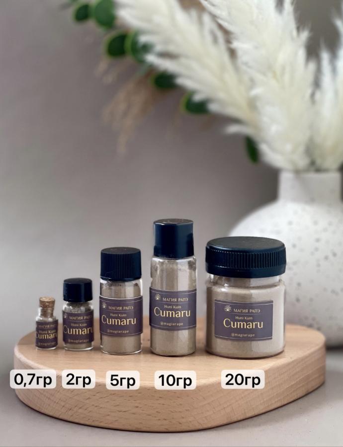 Это рапэ приготовлено шаманом из племени Катукина из пепла дерева Кумару (Dipteryx odorata). Согласно знаниям коренных народов Хуни Куин, Кумару – это дерево, которое не гниет. Считается, что оно обладает мудростью многих чар, его сила связана с духовной защитой и способностью бороться со злым глазом. Данное Рапэ довольно сушит, поэтому он очень хорош при проблемах с дыханием, но не так подходит для ежедневного использования.