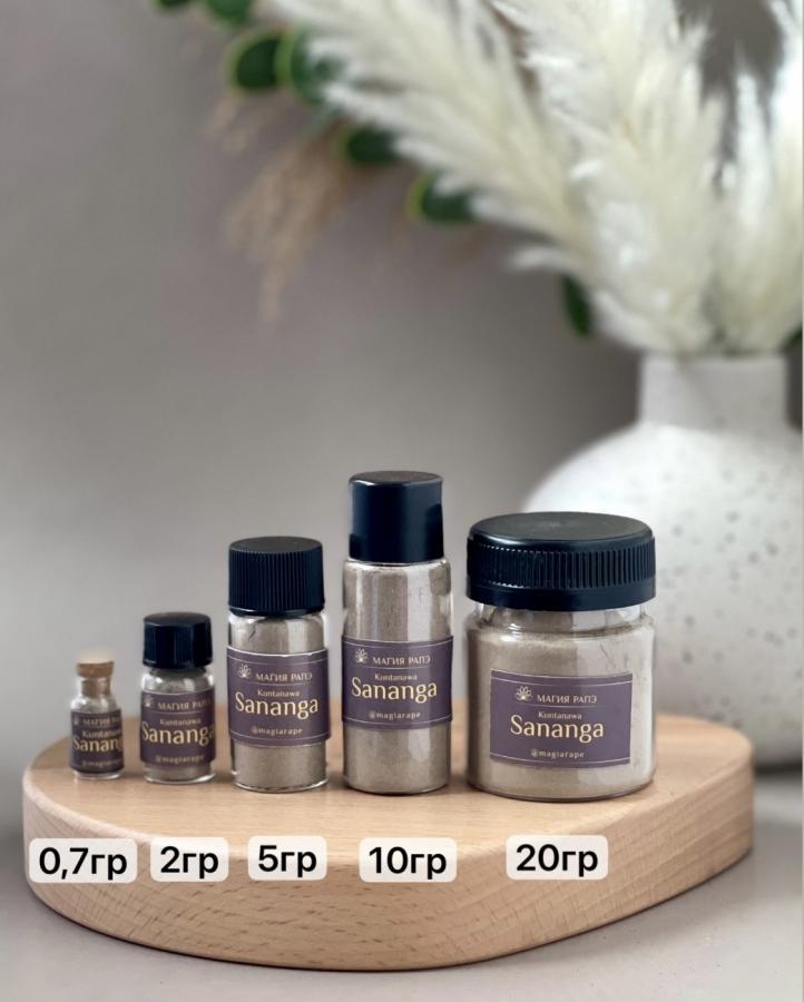 Rapé Kuntanawa — Sananga приготовлен по рецепту шаманов из племени Kuntanawa. Добавление коры корня Сананга, придаёт рапэ освежающий эффект, эффект ясности. Данный сорт является отличным дополнением к глазным каплям сделанным также из корня растения Сананга.