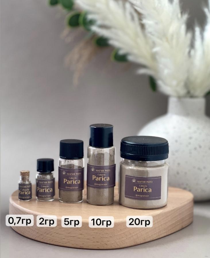 При первом использовании Рапэ Caboclo – Paricá кажется слишком мощным, но через несколько секунд сознание выравнивается до глубокой безмятежности и ясности. Невероятно глубокий эффект этого сорта рапэ обусловлен его необычным воздействием на организм. Сразу же после применения вы почувствуете его огромную силу и прилив энергии. Эффективен в очищении ума и способен сдвигать сознание в более ясное вдохновлённое состояние.